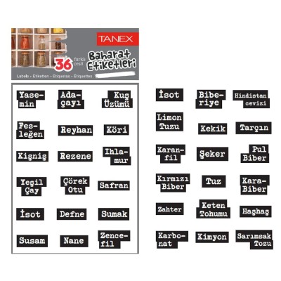 Tanex şeffaf harf ve rakam etiketleri, düzenli ve profesyone..