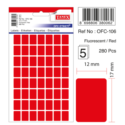 Tanex Ofc-106 Flo Kırmızı Ofis Etiketi soğuk ve nemli yüzeylerde bile özellikle hızlı ve güvenli yapışma. Çevre dostu ve sürdürülebilir FSC sertifikalıdır. Etiketler atık kağıt, geri dönüşümlü karton ambalaj ile% 100 geri dönüştürülebilir.