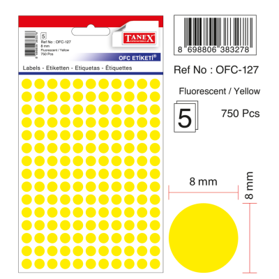 Tanex Ofc-128 Mıx Color Ofis Etiketi 10mm 540 Adet