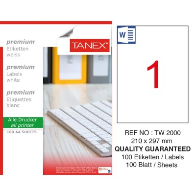 Tanex TW-2000 210x297mm Sökülebilir Etiket 100 Lü Teknik Özellikler;