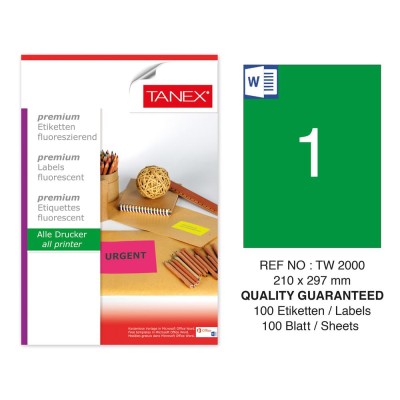 Tanex TW-2000 210x297mm Yeşil Floresan Laser Etiket 100 Lü