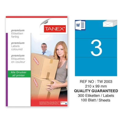 Tanex TW-2003 210x99mm Mavi Pastel Laser Etiket 100 Lü