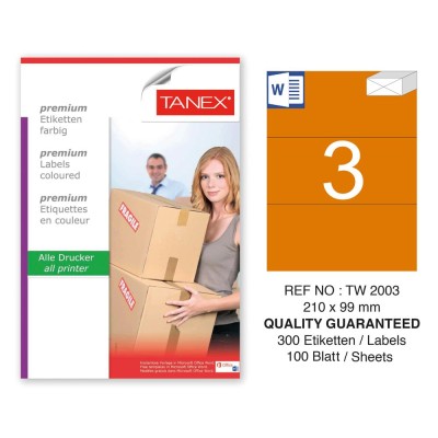 Tanex TW-2003 210x99mm Turuncu Pastel Laser Etiket 100 Lü