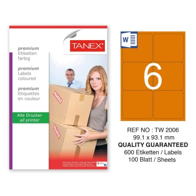 Tanex TW-2006 99,1x93,1mm Turuncu Pastel Laser Etiket 100 Lü Teknik Veriler,