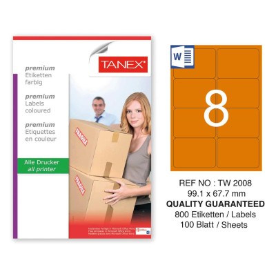 Tanex TW-2008 99,1x67,7mm Turuncu Pastel Laser Etiket 100 Lü