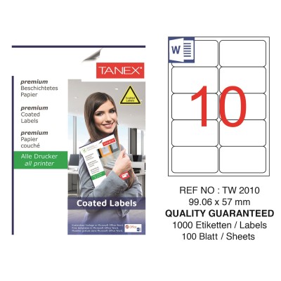 Tanex TW-2010 99,06x57mm Kuşe Laser Etiket 100 Lü Paket