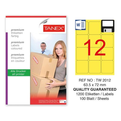 Tanex TW-2012 63,5x72mm Sarı Pastel Laser Etiket 100 Lü