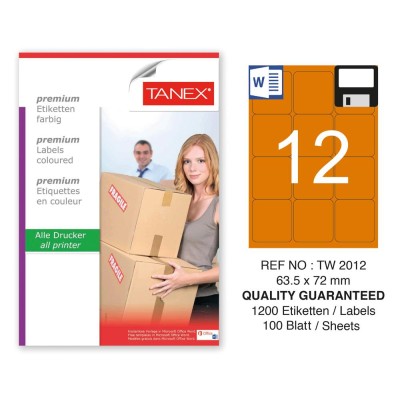 Tanex TW-2012 63,5x72mm Turuncu Pastel Laser Etiket 100 Lü