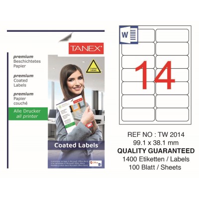 Tanex TW-2014 99.1x38.1mm Kuşe Laser Etiket 1400 Adet