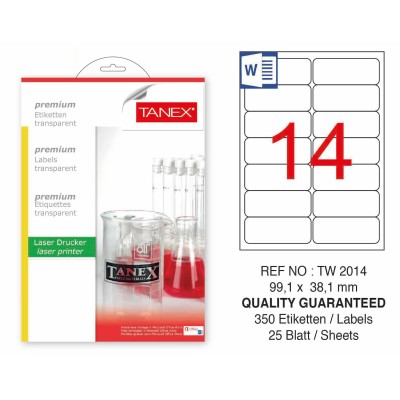 Tanex TW-2014 99.1x38.1mm Polyester Etiket 25 Li Tüm laser yazıcılar, fotokopi makineleri, renkli lazer yazıcıları ve renkli fotokopi makineleri için ..