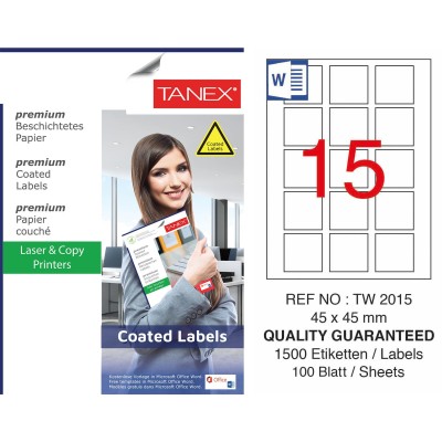 Tanex TW-2015 45x45mm Kuşe Laser Etiket 100 Lü Paket Özellikleri,
