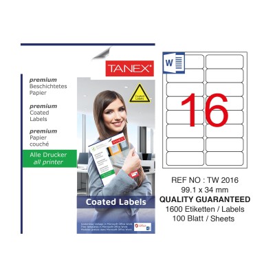 Tanex TW-2016 99.1x34 mm Kuşe Laser Etiket