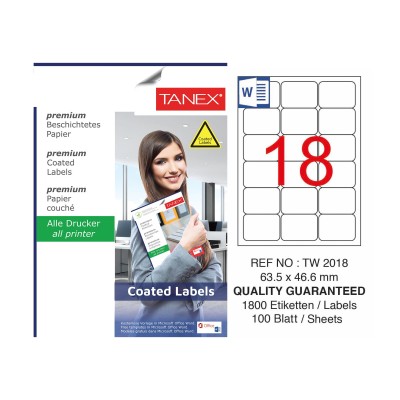 Tanex TW-2018 63.5x46.6mm Kuşe Laser Etiket 100 Lü Paket Özellikleri,