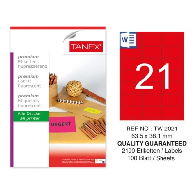 Tanex TW-2021 63,5x38,1 mm Kırmızı Floresan Laser Etiket 100 Lü