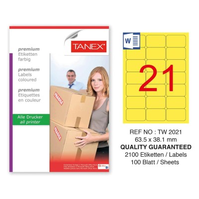 Tanex TW-2021 65.5x38.1mm Polyester Etiket 25 Li Tüm laser yazıcılar, fotokopi makineleri, renkli lazer yazıcıları ve renkli fotokopi makineleri için ..