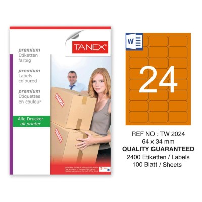 Tanex TW-2024 64x34mm Turuncu Pastel Laser Etiket 100 Lü