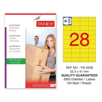 Tanex TW-2028 52,5x35mm Sarı Pastel Laser Etiket 100 Lü