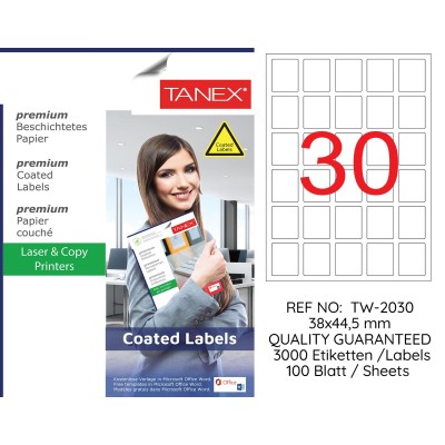 Tanex TW-2030 38x44.5mm Kuşe Laser Etiket 100 Lü Paket