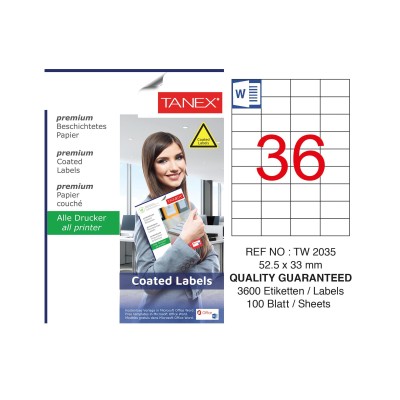 Tanex TW-2035 52.5x33mm Kuşe Laser Etiket 100 Lü Paket