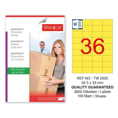Tanex TW-2035 52,5x33mm Sarı Pastel Laser Etiket 100 Lü