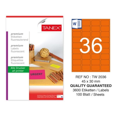 Tanex TW-2036 45x30 mm Turuncu Floresan Laser Etiket 100 Lü