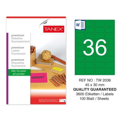 Tanex TW-2036 45x30 mm Yeşil Floresan Laser Etiket 100 Lü
