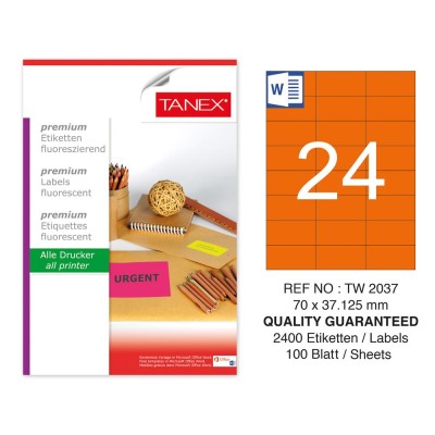 Tanex TW-2037 70x37,125 mm Turuncu Floresan Laser Etiket 100 Lü