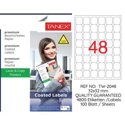 Tanex TW-2048 32x32mm Kuşe Lazer Etiket 100 Lü Paket Özellikleri,