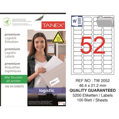 Genellikle kutu,koli veya palet gönderileri için kullanılan Tanex Tw-2052 Sevkiyat ve Lojistik Etiketi 46.6x21.2mm hızlı gönderi ve en iyi fiyat garantisi ile sizlerle.