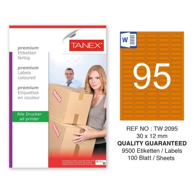 Tanex TW-2095 30x12mm Turuncu Pastel Laser Etiket 100 Lü