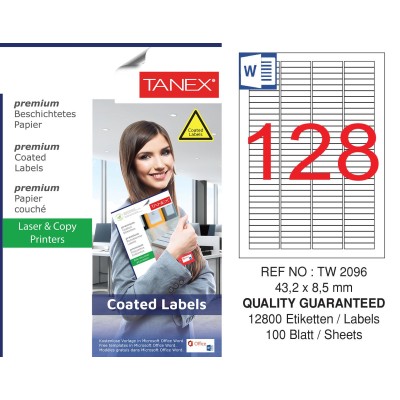 Tanex TW-2096 43.2x8.5mm Kuşe Laser Etiket 100 Lü Paket