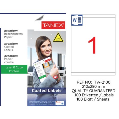 Tanex TW-2100 210x280mm Kuşe Laser Etiket 100 Lü Paket Özellikleri,