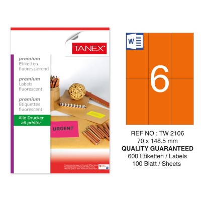 Tanex TW-2106 70x148,5 mm Turuncu Floresan Laser Etiket 100 Lü
