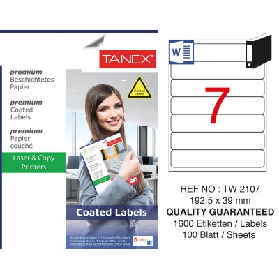 Tanex TW-2107 192.5x39mm Kuşe Laser Etiket 100 Lü Paket Özellikleri,