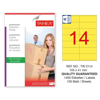 Tanex TW-2114 105x41mm Sarı Pastel Laser Etiket 100 Lü Paket