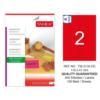 Tanex TW-2116 116x41 mm Kırmızı Floresan Laser Etiket 100 Lü