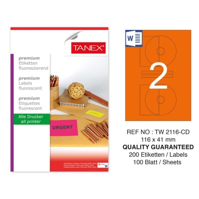 Tanex Tw-2116 116x41 mm Turuncu Floresan Laser Etiket 100 Lü