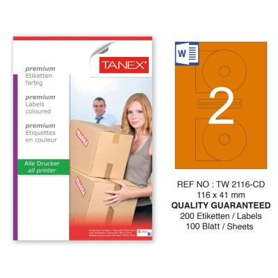 Tanex TW-2116 116x41mm Turuncu Pastel Laser Etiket 100 Lü