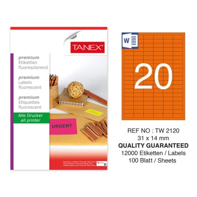 Tanex Tw-2120 31x14 mm Turuncu Floresan Laser Etiket 100 Lü