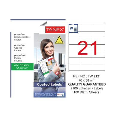 Tanex TW-2121 70x38mm Kuşe Laser Etiket 100 Lü Paket
