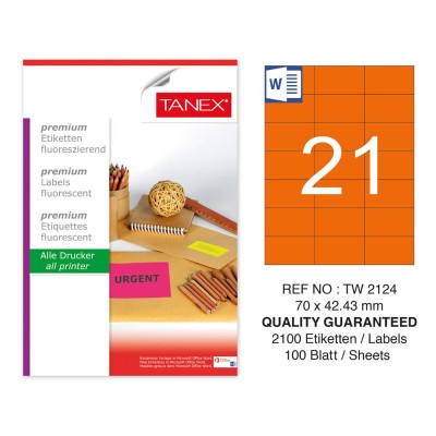 Tanex Tw-2124 70x42,43 mm Turuncu Floresan Laser Etiket 100 Lü