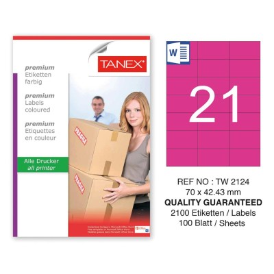 Tanex TW-2124 70x42.43mm Pembe Pastel Laser Etiket 100 Lü