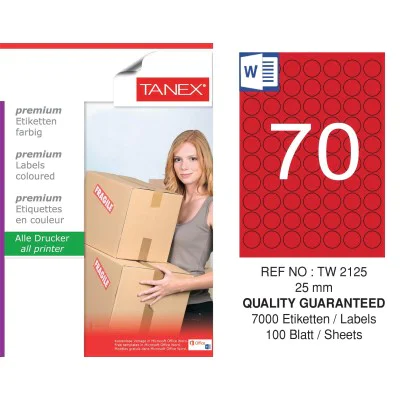 Tanex TW-2125 25mm Kırmızı Pastel Laser Etiket 100 Lü Teknik Veriler,