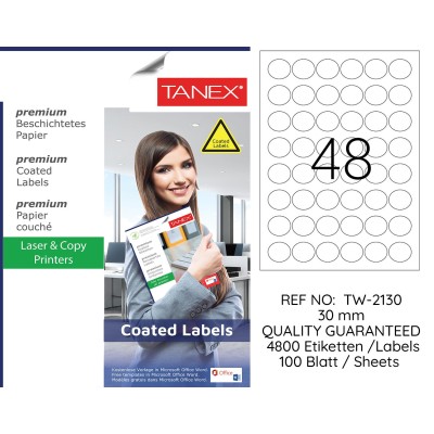 Tanex TW-2130 30mm Kuşe Laser Etiket 100 Lü Paket