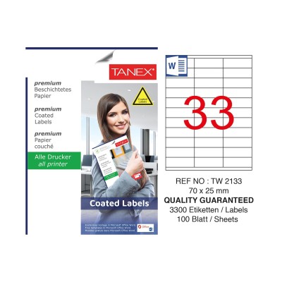 Tanex TW-2133 70x25mm Kuşe Laser Etiket 100 Lü Paket