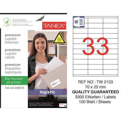 Tanex TW-2133 Laser Etiket 70 x 25 mm Etiket hayatımızda bir çok alanda kullanılan bir üründür.Sektöre ismini veren Tanex markası tüm etiket ihtiyaç..
