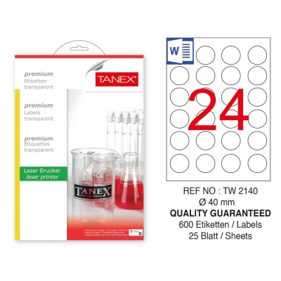 Tanex TW-2140 40mm Polyester Etiket 25 Li Tüm lazer yazıcılar, fotokopi makineleri, renkli lazer yazıcıları ve renkli fotokopi makineleri için mükemme..