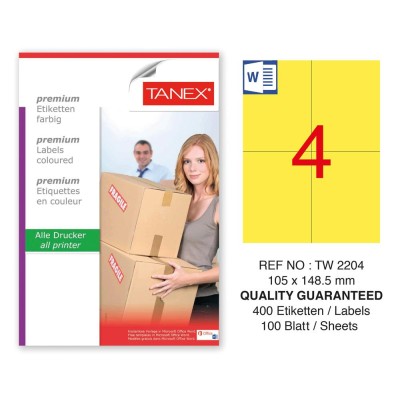 Tanex TW-2204 105x148,5mm Sarı Pastel Laser Etiket 100 Lü Paket