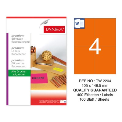 Tanex Tw-2204 105x148,5mm Turuncu Floresan Laser Etiket 100 Lü