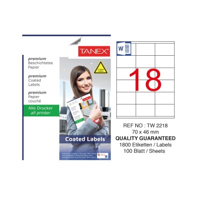 Tanex TW-2218 70x46mm Kuşe Lazer Etiket 100 Lü Paket
